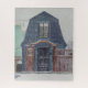 "Dia de neve no bairro" retrata uma casa cinza em estilo de celeiro em um dia de neve em Portland, Maine. A obra de arte original é de lápis pastel sobre papel de 30x40 cm.