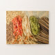 Um quebra-cabeça de serra com a imagem fotográfica de diferentes tipos de massas que enchem a moldura. Preencha com a bandeira italiana de Vermelho, Amarelo e Verde. Este quebra-cabeça é totalmente personalizável. Você pode adicionar uma mensagem ou qualquer texto ou pode alterar o tamanho e a quantidade de partes do quebra-cabeça para definir o nível de dificuldade como preferir.