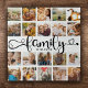 Quebra-cabeça de colagem de fotos personalizada moderna com espaço para 20 fotos em volta de um script giro de tendências lendo FAMILY e seu nome personalizado abaixo.