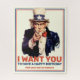 Adicione a sua mensagem, diversão de aniversário, poster do Tio Sam "Eu quero você", baseado na poster de 1917 do J. M. Flagg, que foi baseada em um poster original do Lord Kitchener britânico de três anos antes. Foi usado para recrutar soldados para a Primeira Guerra Mundial e para a Segunda Guerra Mundial. Flagg usou uma versão modificada do próprio rosto para o tio Sam. ... Clique no botão "Personalizar" ou "Editar Design" para adicionar seu próprio texto, cor, fonte ou tamanho e criar seu próprio dom original especial (ou um tratamento especial para você mesmo!). Que tal o nome de alguém, uma saudação de aniversário ou de Natal, um lugar e um encontro?... ou, se quiser, não adicione texto e tenha a imagem por si só. NÃO SE ESQUEÇA DE ESCOLHER O NÚMERO CORRETO DE PEDAÇOS DE JIGSAW! Ajuste sua foto e texto conforme necessário. Piece & Quiet© - Todos Os Direitos Reservados.