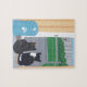 A pintura cômoda e colorida de uma carapaça de tartaruga e de um gato de smoking, sentados ao lado da porta de vidro deslizante, observando aves no pátio, por CherylsArt, é impressa em quebra-cabeça de serra personalizados. Esta é uma ideia divertida para seus filhos e/ou para amantes de gatos.