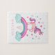 Um unicórnio mágico, bonito, com corações e um arco-íris decoram esta quebra-cabeça. Personalize com o nome dela. Um presente divertido para uma garota. Projetado para você pelo Blackberry Boulevard.