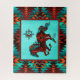 Aproveite esta Quebra-cabeça de Cavalo Sudoeste Única "Um dos Tipos"! Possui uma Silhueta de Cavalo Galopante do Sudoeste em um Fundo Turquesa...Cercada por uma borda sudoeste em Turquesa, Laranja e Preto Escuro! Este é um Design de Arte Gráfica Original criado pelo Artista Kerry Miller.