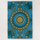 quebra-cabeça de quebra-cabeça de 30" x 20" com uma imagem de um fabuloso fractal do cosmos, com as suas galáxias ouros e estrelas a orbitar à volta de um sol ouro, a azul tipo satin. Veja toda a coleção de Quebra-cabeça de Arte Fractal na seção HOME.