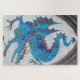 Um dragão azul rastejando sob um quebra-cabeça de arco
