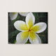 Um quebra-cabeça de serra de vaivém de uma flor e de pingos de chuva do Frangipani provará um desafio agradável com seus tons similares: tem lotes do branco, amarelo do og dos lotes e lotes de verde escuro. Você encontrá-lo-á na escala do presente do Frangipani dos cartões e dos presentes por imagens do monte do solar.