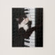 Quebra-cabeça do jogo mostrado com um impressão da foto de um gatinho bonito no piano. Personalize este artigo ou compre-o como é. Armazene a imagem