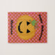 A gritaria não assustadora esculpida de abóbora face ao quebra-cabeça de Halloween. Texto editável em um fundo de bolinhas rosa. Consulte o aviso de segurança do produto para conhecer a adequação à idade e os riscos de asfixia em "sobre este produto". Veja todas as opções de tamanho.