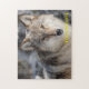 Este quebra-cabeça de jogo é mostrado com um impressão de foto de um lobo selvagem no Parque Yellowstone.