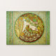 Quebra-cabeça do louro de Alphonse Mucha. Poster da litografia desde 1901. O artista checo Alphonse Mucha era ilustre para seus trabalhos alegóricos. O louro é uma pintura que caracteriza um brunette novo bonito drapejado na hera. Olha avante no perfil e veste um rosa amarelo em sua caixa. O poster ornamented intrincada com as folhas, os azulejos e as setas de bloqueio da hera. Um grande presente para fãs de Mucha, de posters do nouveau da arte, e de impressões do vintage.