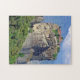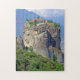 Uma bela vista de um dos mosteiros sobre as rochas de Meteora em Grécia impressa em um quebra-cabeça.