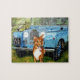 Luz - série azul uma Land Rover & Sandy Sam o cão de border collie. De uma pintura original pela batata frita JackCrisp.co.uk de Gary John Langford