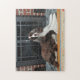 Este é um quebra-cabeça que caracteriza uma fotografia original de um fígado bonito e de um Spaniel de Springer inglês branco que encontram-se na frente de uma lareira.