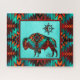 Aproveite esta Quebra-cabeça única de "um tipo" sudoeste! Ele apresenta um búfalo sudoeste ou uma Silhueta Bison em um fundo Turquesa...Cercada por uma borda sudoeste em Turquesa, Laranja e Preto Escuro! Este é um Design de Arte Gráfica Original criado pelo Artista Kerry Miller.