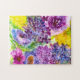Divertimento familiar com este quebra-cabeça feito para Springtime! Flores macias de primavera na moderna cor de água floral rosa, azul, roxo, amarelo, verde. Hídrangas de jardim, papoilas, peonias e verde-azul. ideia de presente de excelente!