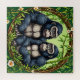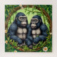 Uma representação artística de dois gorilas exibidos dentro de uma moldura circular decorativa rodeada por bambu luxuriante, flores e vegetação, enfatizando a natureza tropical e a beleza da vida selvagem.