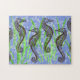 Natação esplêndido dos cavalos marinhos entre a alga.