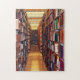 Este quebra-cabeça legal toma-o em uma caminhada abaixo de um corredor longo dos livros nas pilhas de uma biblioteca enorme. A iluminação brilhante revela espinhas do livro em um caleidoscópio das cores: vermelho, verde, azul, preto, branco, ouro, marrom, roxo. O ângulo simétrico cria um design abstrato geométrico que pareça conduzir à infinidade.