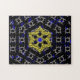 Padrão bonito de ouro líquido e mandala de metal prateado com fundo de plasma preto e azul quebra-cabeça