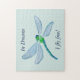 Uma aquarela de uma linda libélula azul e verde enfeita esta quebra-cabeça! Personalize adicionando ou alterando o texto e a cor de fundo para se adequar a si próprio.