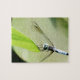 Quebra-cabeça Dragonfly azul sobre uma folha verde