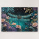 Quebra-cabeça Dragonfly em um jardim floral à noite