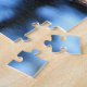 Esta quebra-cabeça de fotografia de um macro-inseto, que chama a atenção, mostra uma libélula empoleirada num galho com árvores e céu azul ao fundo. Faz uma quebra-cabeça desafiadora.