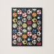 quebra-cabeça de um sorriso de bolas coloridas de futebol de 8" x 10" em frente a uma rede de gol de futebol em preto. Fronteira negra. Inclui caixa de presente com imagem impressa na tampa. Veja toda a coleção de Quebra-cabeça do Dia do Pai nas ATIVIDADES| Seção Quebra-cabeça.