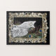 Esta é uma pintura que do gouache eu fiz de um gato de prata bonito Qetesh de Mau do egípcio que se senta dentro de um quadro antigo, com as penas do pavão no fundo.