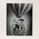 Elefante bebê divertido a dar uma volta num balão de ar quente. A imagem branca é colocada contra um fundo sonhador, criando um senso de aventura e maravilha. A combinação única de um elefante e um balão de ar quente certamente adiciona um toque de capricho e diversão.