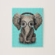 Este design adorável pelo artista Jeff Bartels caracteriza um elefante do bebê que veste grandes fones de ouvido do DJ. Os fones de ouvido dão ao elefante o olhar que está a ponto de girar alguns registros ou é apenas relaxar, escutando alguma música. O elefante está vestindo os grandes vidros orlarados grossos que dão ao teste padrão um brincalhão, olhar do olho do hipster. Este design bonito e original do elefante é prefeito para todo o animal ou melómano.