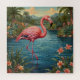 Um paraíso vintage com este flamingo cor-de-rosa, retrorestilado, elegante numa lagoa tropical tranquila.