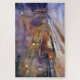 aquarela: um elétrico italiano corre sob a neve durante a noite