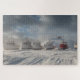 Quebra-cabeças, jogo, embarcações de pesca em cunha seca na neve o inverno. Fotografia “Hibernação”. Paisagem do Iles-de-la-Madeleine, Quebeque, Canadá, Marie-Ève LaBadie Fotógrafo