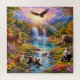 Set in a vibrant mountain valley, this artwork features a cascading waterfall, crystal-clear lake, colorful wildflowers, and majestic animals living in perfect harmony.