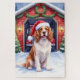 Share holiday cheer with this festive Christmas card featuring an English Springer Spaniel wearing a Santa hat outside a warmly decorated fire station. Gentle snowfall, glowing lanterns, and a classic fire truck add a cozy watercolor holiday touch perfect for firefighters and dog lovers. The blank interior provides room for personal messages, making it ideal for seasonal appreciation, heartfelt gifting, and breed-themed stationery collections.