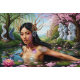 "Equações no Sangue" - Um Retrato Digital. As pétalas atravessam a água enquanto o perfil da mulher se funde com fractais, circuitos e diagramas cósmicos. A cena incorpora a poesia da matemática expressa pela natureza, onde a cereja floresce espelhando verdades geométricas. Essa trabalho de arte revela a elegância compartilhada da ordem científica e da beleza orgânica, sugerindo que a descoberta em si é uma espécie de floração.