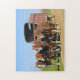 Quatro cavalos bonitos do trabalho que puxam um amish cultivam o vagão
