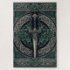 Um design Celta em tons de verde com uma espada curta e nós Celtas.