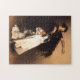 Quebra-cabeça espanhol do dançarino de Sargent do cantor. Pintura a óleo em canvas desde 1879-82. O pintor americano John Singer Sargent viajou o mundo que pinta retratos magistrais e paisagens. O dançarino espanhol é uma de suas pinturas o mais visualmente dinâmicas, descrevendo uma mulher espanhola nova em uma dança preta da blusa e da saia do branco antes de um fundo tan vazio. Um presente bonito para fãs de John Singer Sargent, de pinturas da dança, de dançarinos espanhóis, e do art. americano.