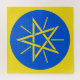 Emblema da Etiópia. O emblema nacional da Etiópia está em sua forma atual desde 1996. Contém um pentagrama de ouro irradiando raios de luz num escudo azul. Hoje o pentagrama representa a unidade das pessoas e a nacionalidade da Etiópia. O emblema também aparece no centro da bandeira da Etiópia.
