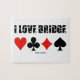 Você ama o jogo da ponte? Mostre seu amor pelo jogo da ponte com este quebra-cabeça de quebra-cabeça com os quatro trajes de cartas junto com a seguinte ponte que diz na fonte Love Letters: "I Love Bridge" (Eu amo a ponte). Ponte memorável dizendo quebra-cabeça de quebra-cabeça para qualquer ponte ávida / jogador de ponte duplicado!