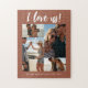 Tatota moderna e quebra-cabeça de colagem de fotos com script de pincel branco "Eu amo-nos" com nome personalizado e ano.