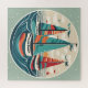 Uma quebra-cabeça festiva de quebra-cabeça com uma fotografia da tradicional canção de Natal "Vi Três Navios". A imagem mostra três veleiros coloridos no oceano, e é bordada por um círculo, dando a aparência de uma vista através de um retângulo. Um presente náutico ideal para o feriado.