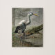 Uma erva azul excelente perde-se numa zona úmida florestal costeira. O Sol brilha pelas folhas das árvores ilumina as névoas que nascem da água. A musgo desbotada cobriu árvores e samambaias enchem o fundo atrás da ave.