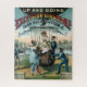 Circa 1885 - Anúncio para Ginger Ale com balão e cesto com tratadores pretos. Duas mulheres bebem Excelsior Ginger Ale, implicando que o carbonato ajuda o balão a subir. Imagem de duas mulheres elegantemente vestidas em vestidos finos e capuzes embarcando em passeio de balão de ar quente, uma fica dentro na cesta segurando um lenço de renda com um operador de balões moído com binóculos e um monóculo, a outra bebe gengibre de um copo quando ela começa a subir uma escada de corda para o artesanato; dois homens afro-americanos com garrafas gengibre frequentem o balão; uma grande multidão de pessoas assiste o espetáculo de bancas atrás de uma cerca branca de madeira pintada com slogans publicitários