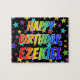 Esta vibrante, divertida, design de quebra-cabeça de quebra-cabeça com tema de aniversário exibe a mensagem "HAPPY BIRTHDAY, EZEKIEL" com os personagens que têm um espectro colorido de arco-íris inspirado em um padrão de gradação, além de um incrível padrão de fundo de campo estelar. Um quebra-cabeça colorido como este pode ser uma maneira divertida de enviar cartões de aniversários a alguém chamado Ezekiel. [~Z0000468]