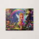 Linda e bonita fada e fofa fada com cores arco-íris na Floresta Encantada, Mundo Mágico, Arte Fantástica para garotas. Design. Poster De Fada Colorida Para Sala De Crianças, Sala De Bebês, Sala De Meninas. Presente para garotas.