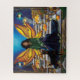 Uma fada com asas laranja e amarelas sentadas sobre passos de pedra que levam talvez ao reino Fada. A Fada Afro-Americana não está sozinha, ela está com o seu cão guardião doberman neste Dia do Outono.