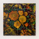 Esta imagem vibrante é uma combinação de uma pintura e arte digital. Ela apresenta flores brilhantes, ouro-amarelas e laranja com texturas intrincadas, semelhantes à web. As flores se assemelham a rosas e outras flores, cercadas por um emaranhado de caules e folhas neonatais em tons de verde, laranja e vermelho. O fundo é escuro, quase negro, que melhora o efeito luminoso das flores e da folhagem. Há também luzes minúsculas, cintilantes, semelhantes a estrelas espalhadas por toda parte, acrescentando uma sensação mágica ou cósmica.